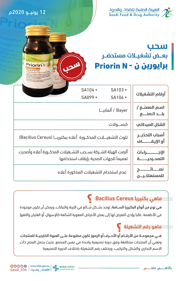 هيئة الغذاء والدواء علاقة دواء Priorin N والتسمم الغذائي محتوى بلس