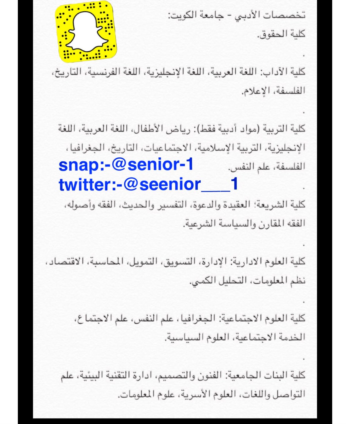 On Twitter من السناب تخصصات العلمي والادبي لجامعة الكويت